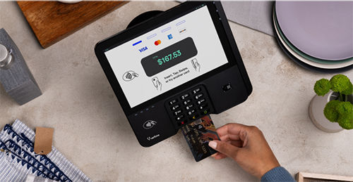 The Samsung self-checkout kiosk, seamlessly integrated with Square